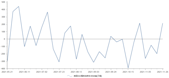 美国截至11月26日当周EIA原油库存变动实际公布减少90.9万桶,预期减少145万桶。从分项来看,汽油库存和精炼油库存不减反增,截至11月26日当周EIA汽油库存实际公布增加402.9万桶,预期减少33.2万桶,前值减少60.3万桶,而EIA精炼油库存实际公布增加216万桶,预期减少80万桶,前值减少196.8万桶。