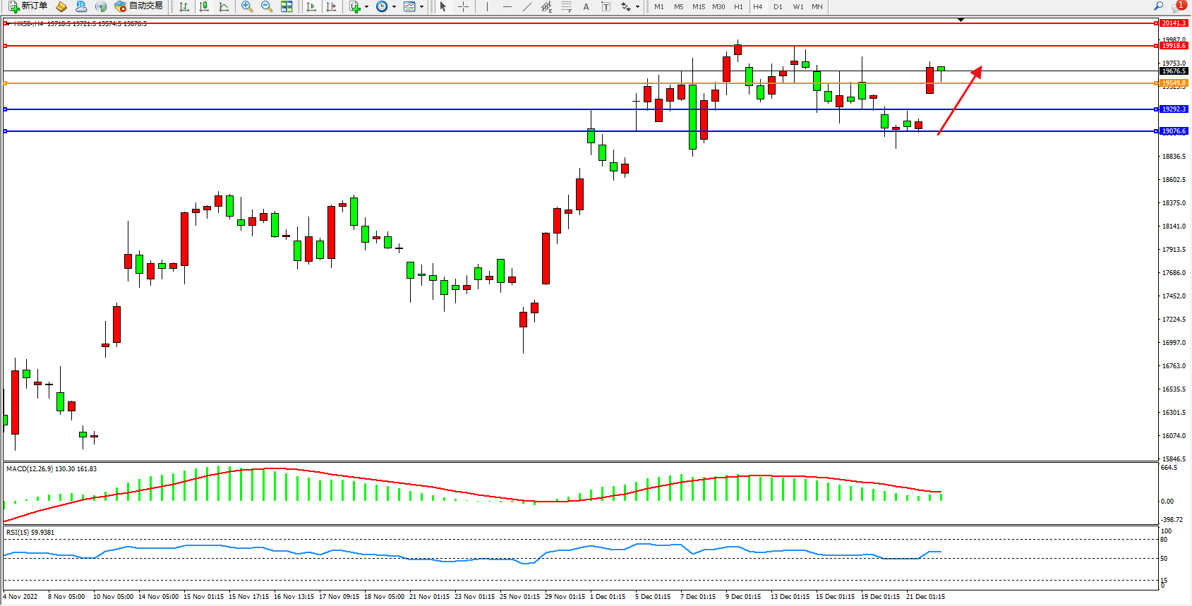 恒指HK50 4小时图